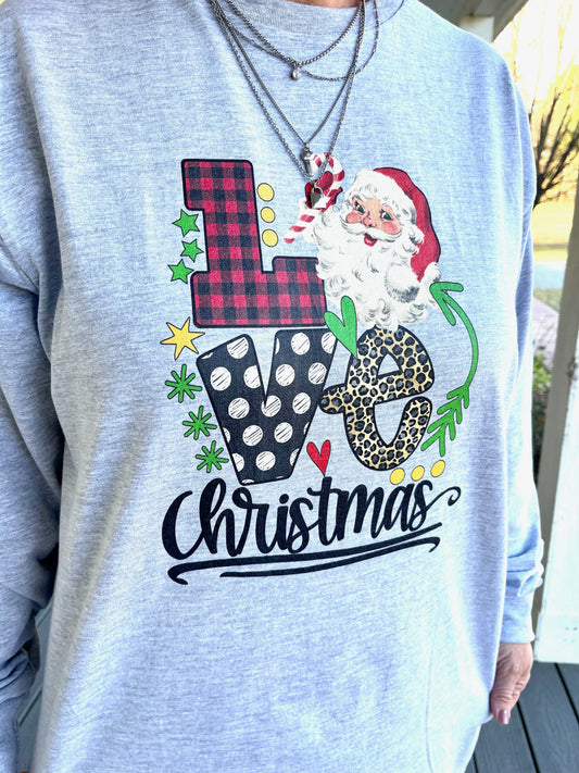 Love, Christmas, Santa Long Sleeve Crewneck Tee